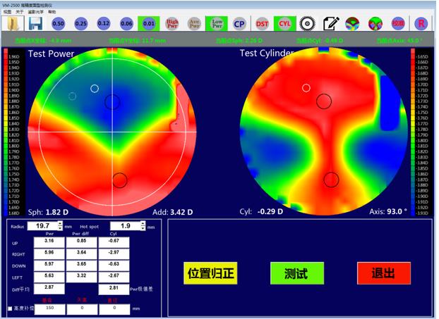 眼鏡片/眼鏡片玻璃模具的S值、C值、ADD值、軸位、非球度值均自動呈現。